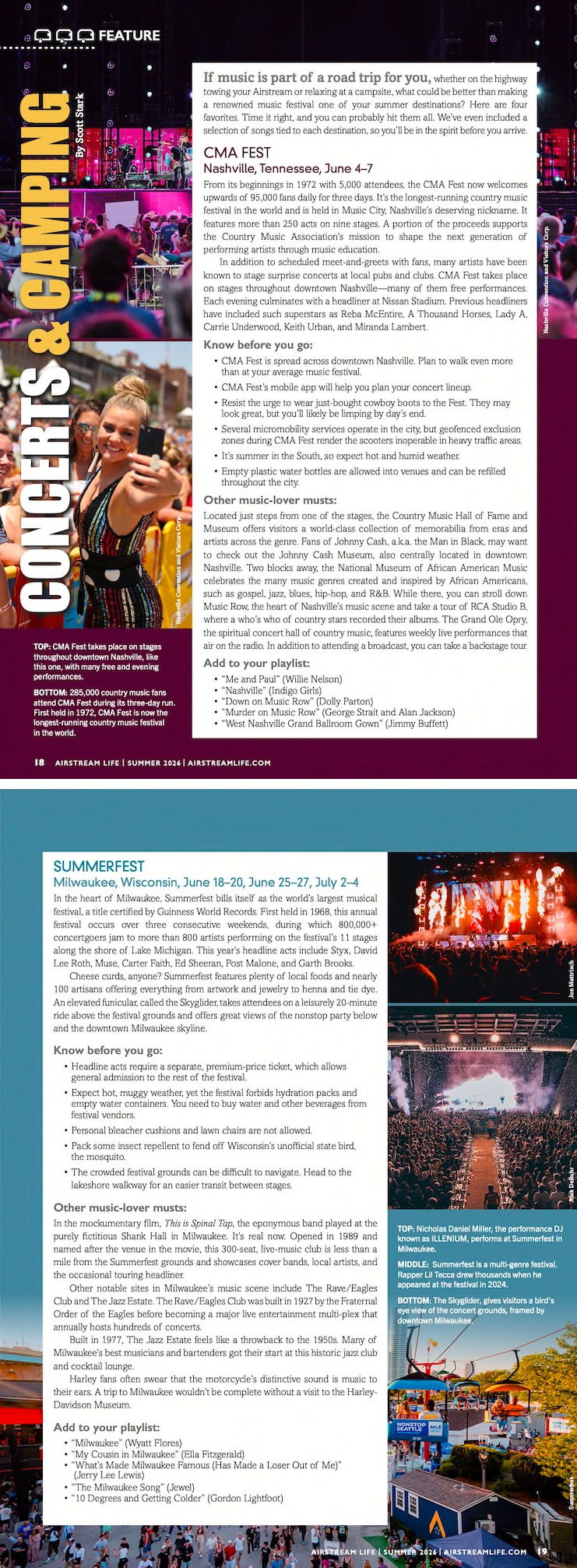 Concerts and Camping There’s no denying that music improves even the best of road trips, so what could be better than making a renowned music festival your destination this summer? Here are four of our favorites—time it right and you can probably hit them all! We’ve even included a selection of road-trip songs tied to each destination so you’ll be in the spirit long before you roll into town. [read partial]
